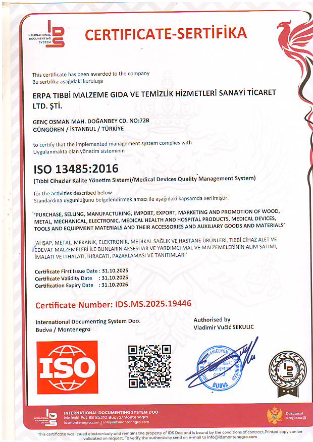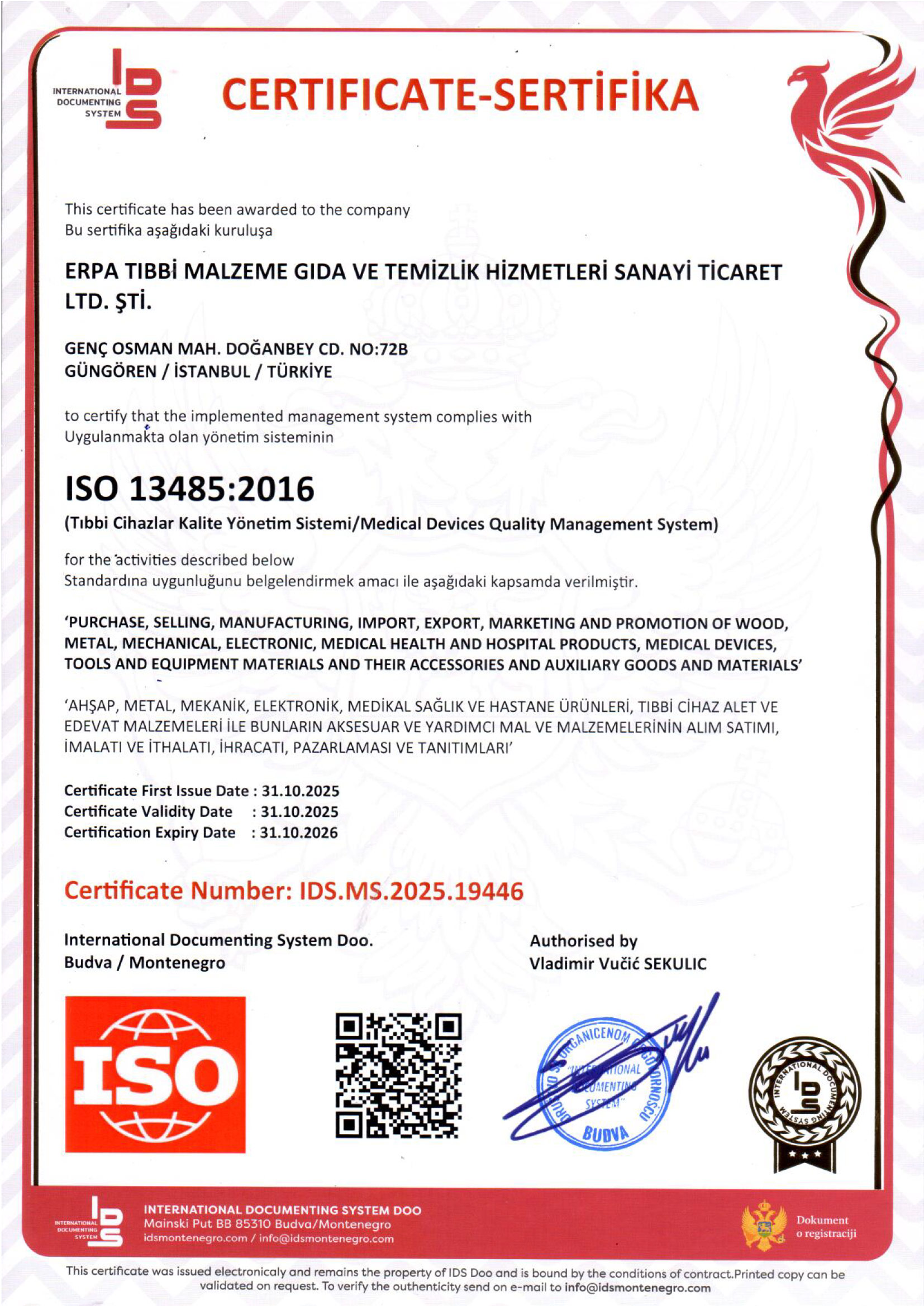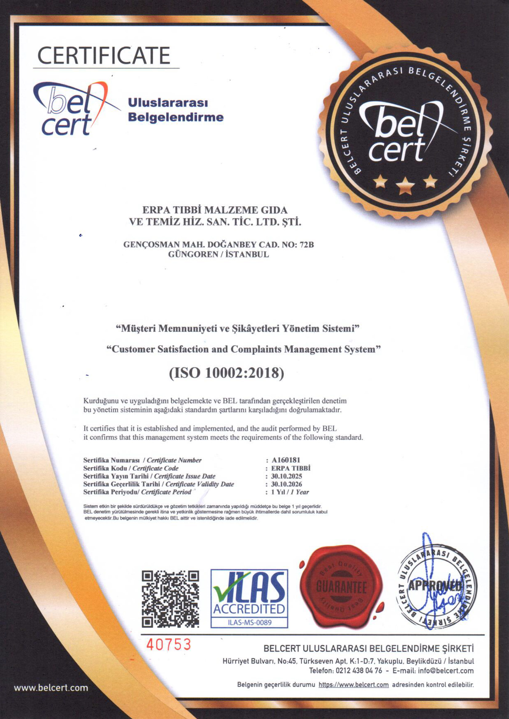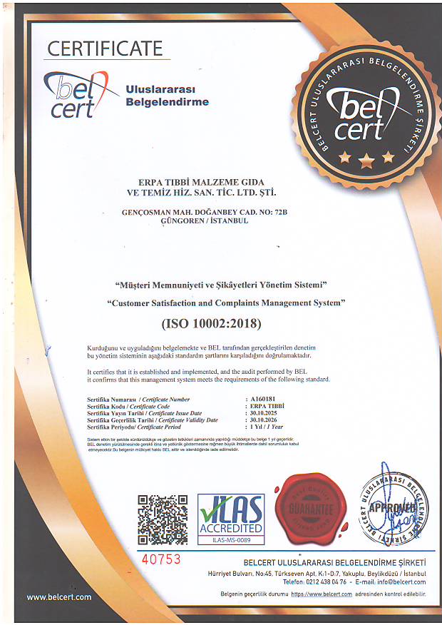 Erpa, profesyonel yöneticileriyle, eğitimli çalışma arkadaşlarıyla ve kaliteden ödün vermeden ürettiği tıbbi malzemelerle müşterilerinin beklentilerini ve ihtiyaçlarını bugüne kadar daima en iyi şekilde karşılamıştır.